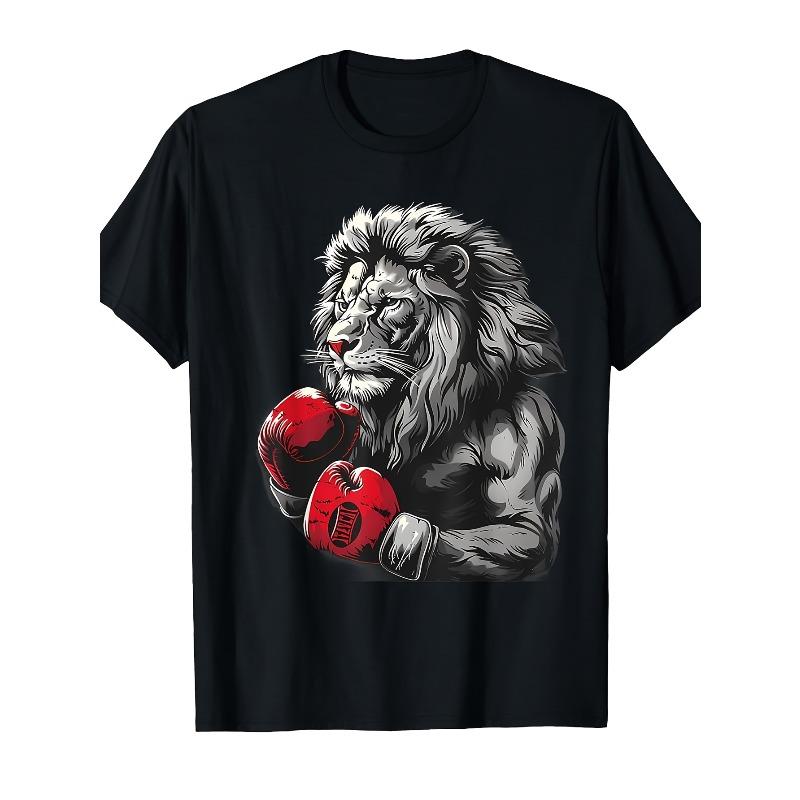 Европейские размеры Мужская футболка с принтом - Ретро футболка для боевых искусств с дизайном Льва-Боксера, с круглым вырезом, с коротким рукавом, повседневная и для спортзала, для фанатов кикбоксинга