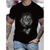 Европейские размеры Мужская футболка, Стиль Черно-белый, Принт Лев, Повседневная Универсальная, Удобная и Дышащая, Мужская Черная Футболка с Коротким Рукавом