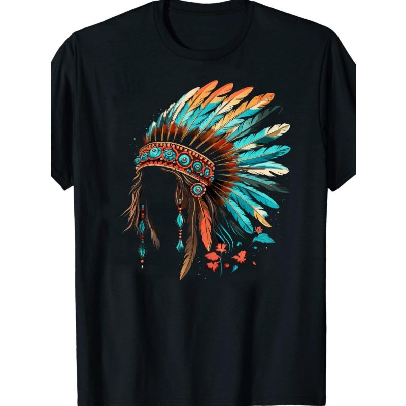 Женская индейская головная повязка с перьями, графический дизайн, повседневная футболка стандартного кроя с круглым вырезом — купить товар онлайн с бесплатной доставкой по всему миру!