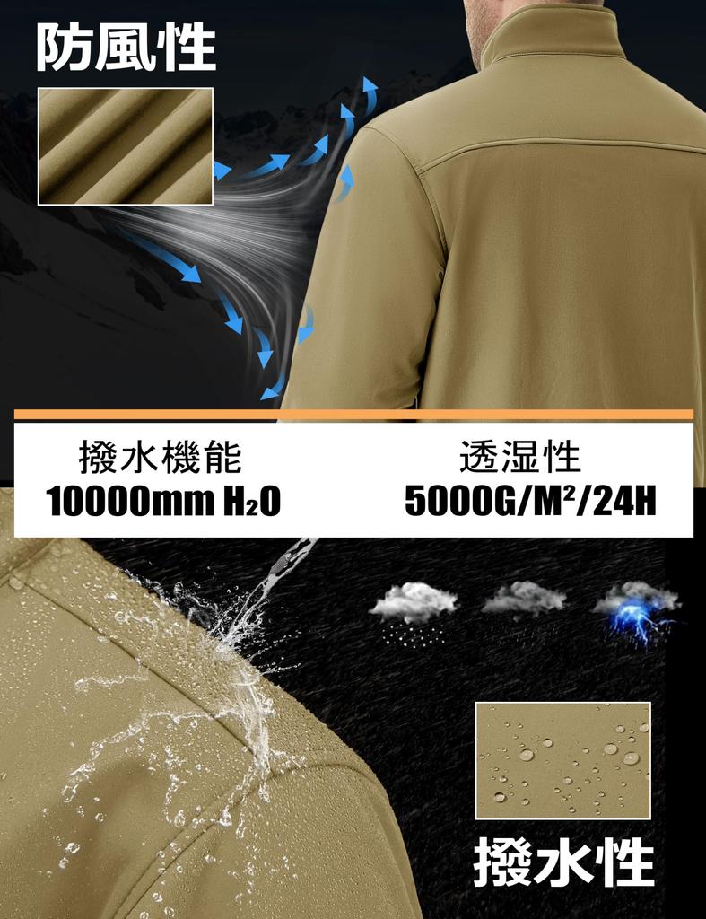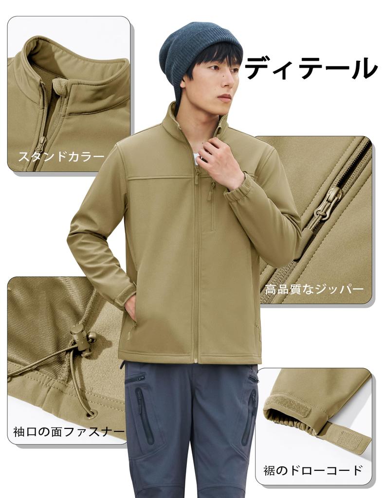 KEFITEVD Men's Softshell Jacket, Winter, Outdoor, Mountaineering, Cold Weather, Windproof, Fleece-Lined, Warm, High-Neck, Windbreaker, Khaki, Size XL