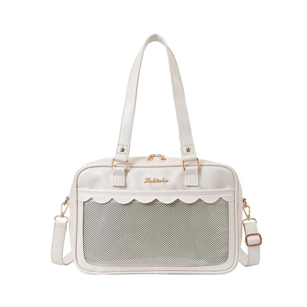 Сумка Manatsulife Ita Bag, школьная сумка, сумка-тоут, женская, двусторонняя, декорированная, прозрачная, для школьной формы JK, формат A4, большая вместимость, TB01 (белый)
