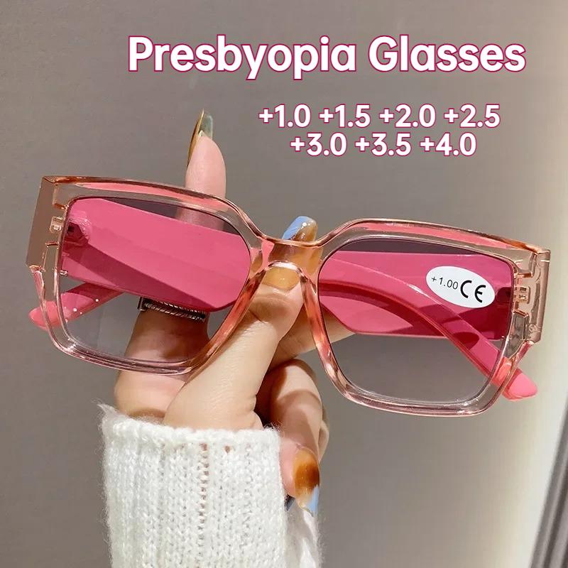 Women's New Fashion Square Frame Reading Glasses Neutral Oversized Frame High-definition Anti-blue Light Presbyopia Glasses