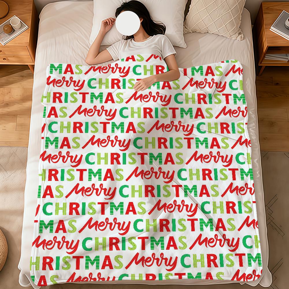 Christmas Pattern Red Green Stripes Flannel Soft Warm Plush Blanket Sofa Living Room Pet Hogar Bedroom Gift Home Car Portable