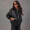 Эта женская винтажная куртка-бомбер из искусственной кожи — незаменимая вещь для создания повседневного уличного стиля.. Он имеет свободный крой, опущенные плечи и застежку-молнию по всей длине, создавая расслабленную ретро-атмосферу.. Наклонные боковые карманы добавляют практичности, а мягкая ткань из искусственной кожи обеспечивает комфорт при повседневной носке.. Доступен в классическом черном и теплом коричневом цветах, он легко сочетается с джинсами, юбками или платьями — идеально подходит для свиданий, шопинга или воскресных прогулок.. Дополните свой гардероб этим вневременным, универсальным предметом верхней одежды!
