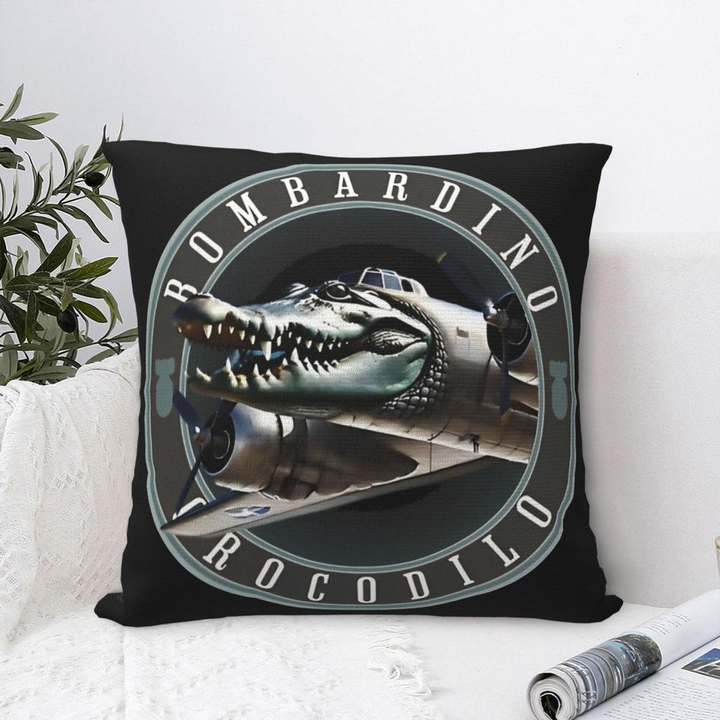 Мем Мозговая Гниль Bombardino Crocodilo Наволочка Чехол для Подушки Креативный Декор на Молнии Чехол для Декоративной Подушки на Сиденье 45x45см