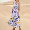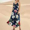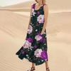 Женское летнее повседневное модное платье без рукавов с круглым вырезом и карманом с цветочным принтом