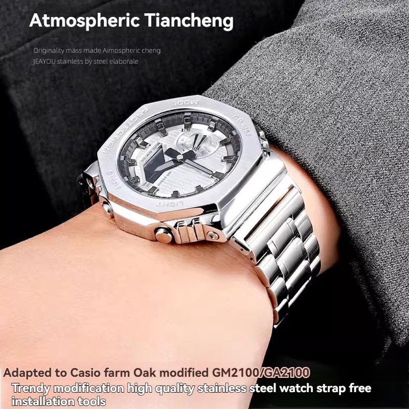 Прочный Стальной Ремешок Для Часов Casio Farm Oak Модифицированный GM2100/GA2100 Черный GM2100 Стальной Браслет Мужской Нержавеющая Сталь