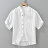 Foreign Trade Surplus Japanese-Style Casual Comfortable Thin Short-Sleeve Shirt for Men, Loose Trendy Chinese Style Stand Collar White Shirt