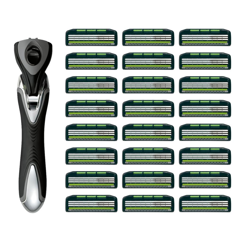 FEATHER MR3 Neo Replacement Box with Made in F-System Blades, 24-Piece Holder, Japan, 3-Blade, T-Shaped Razor, Men's