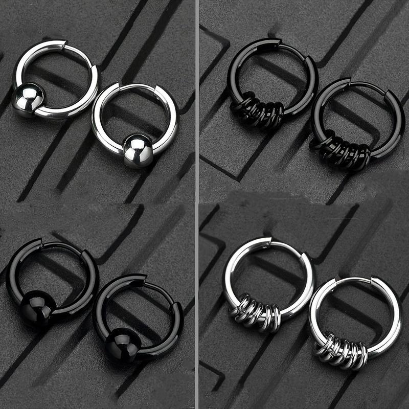 2 шт. Серьги-кольца из нержавеющей стали для мужчин, Маленький круг, Металлический шарик, Гипоаллергенная застежка для ушей, Рок, Хип-хоп, Искусственные украшения, Подарок