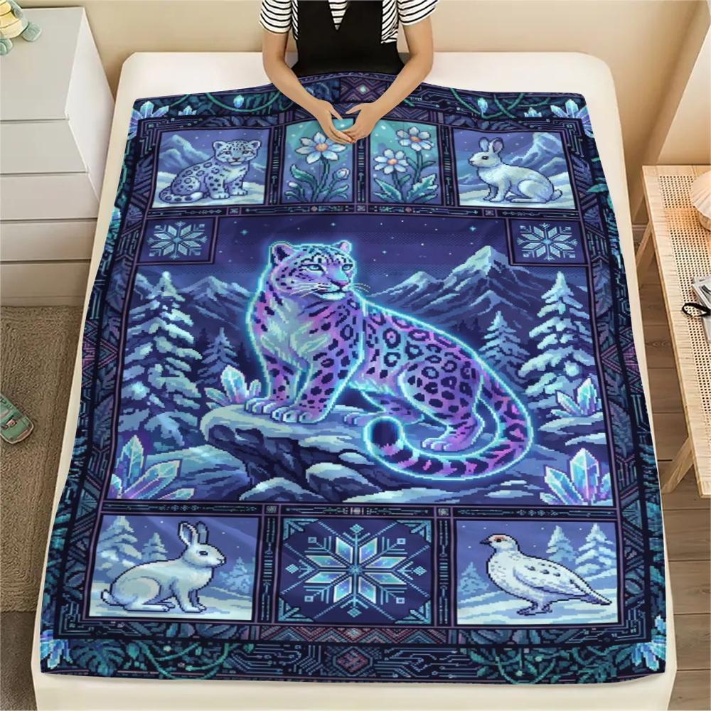 Snow Leopard Animal Print Flannel Blanket, High quality Comfortable for All Seasons, Home Decor, Warmth and Comfort, Perfect for Christmas Gifts121