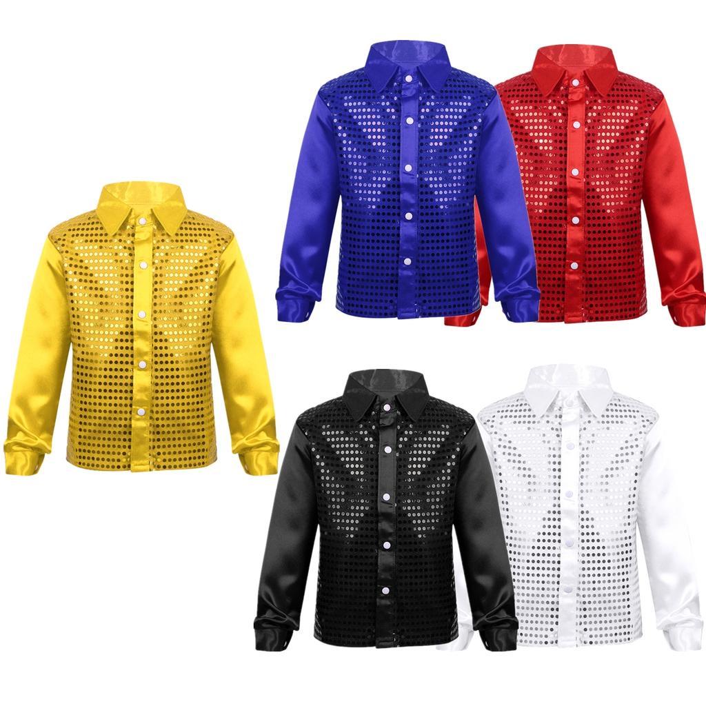 Детская рубашка с блестящими пайетками для мальчиков, танцевальные костюмы для хора, джаза, хип-хопа, вечерние платья на пуговицах с длинными рукавами, рубашки для дискотек — купить товар онлайн с бесплатной доставкой по всему миру!
