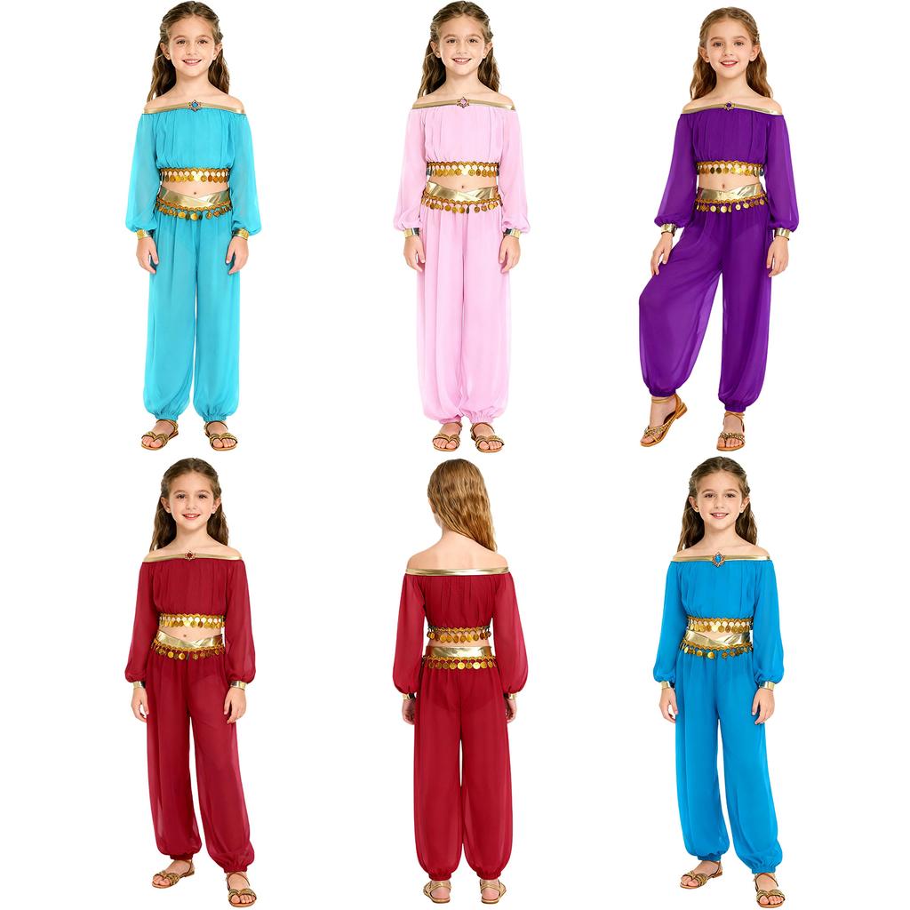 Костюм для восточных танцев для девочки Топ с пайетками и бахромой Брюки со встроенными трусиками Украшение стразами Наряд с длинным рукавом — купить товар онлайн с бесплатной доставкой по всему миру!