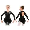 Боди для девочек для джазового танца, спортивной гимнастики, сценический костюм, вставки из пайеток и тюля, длинные рукава, вырезы на спине, фигурного катания, спортивный купальник с юбкой