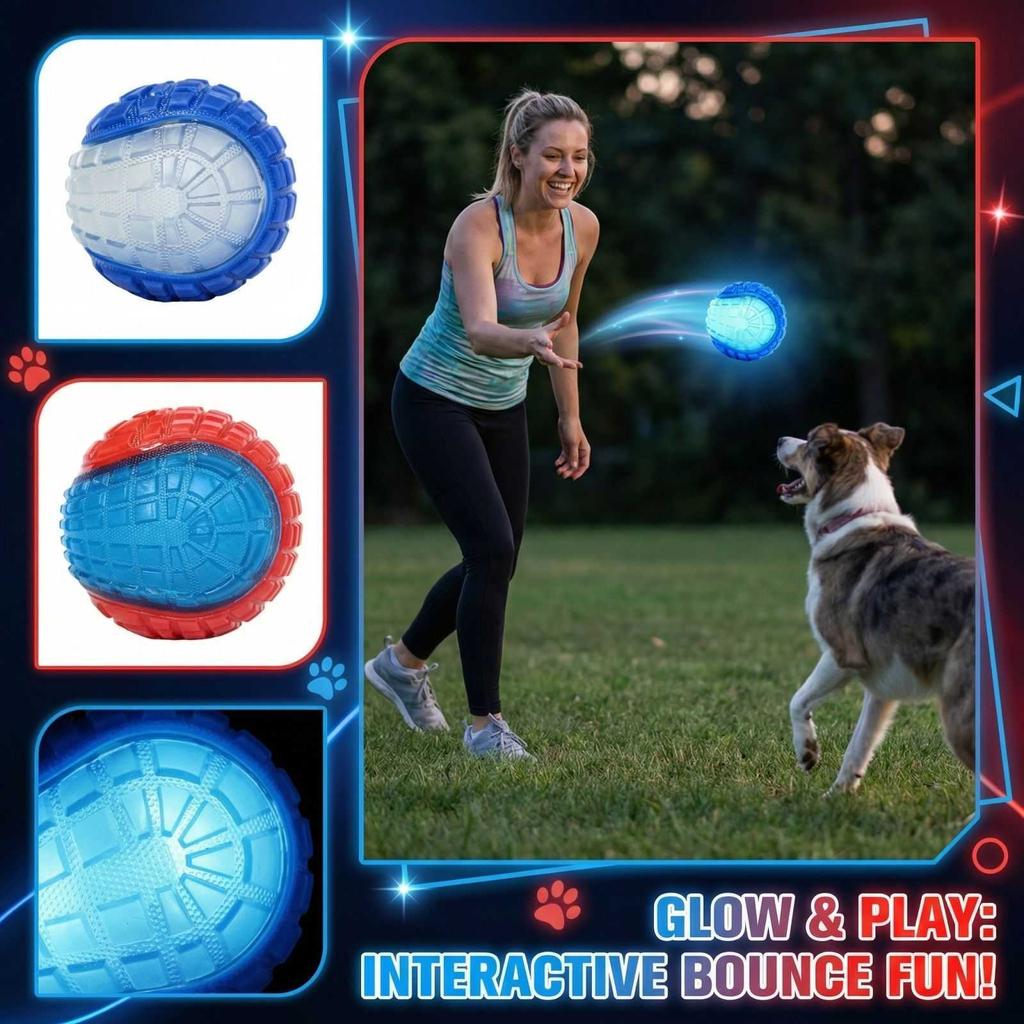 Светящийся в темноте мяч с издающим звук, высокая эластичность, интерактивная игрушка для питомцев
