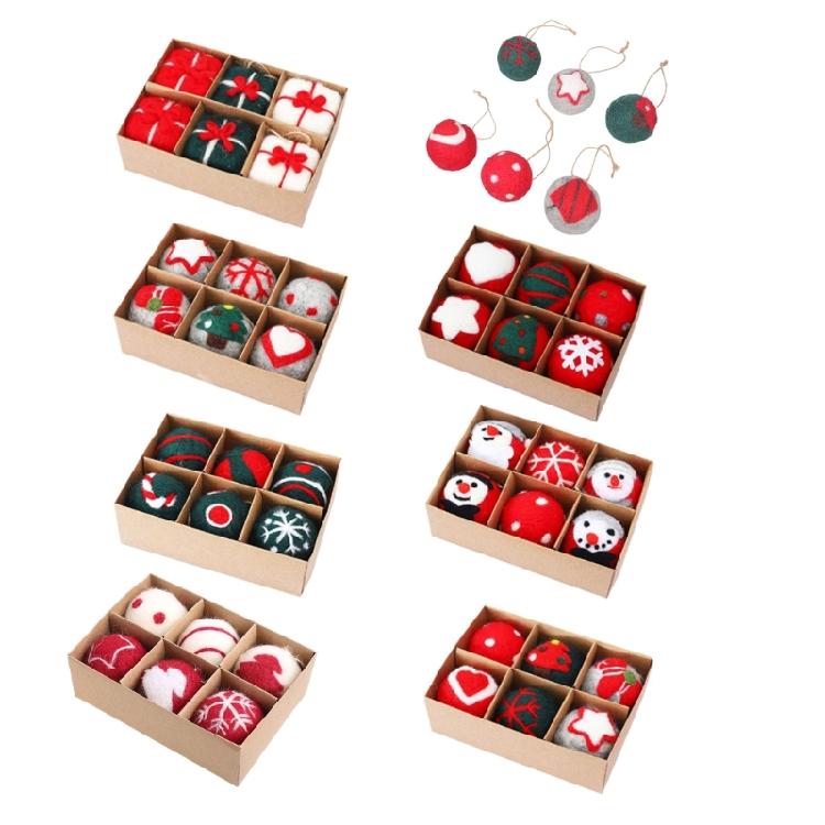 6pcs Felt Christmas Ball Pendant Star Tree Front Door Window Wall Decoration