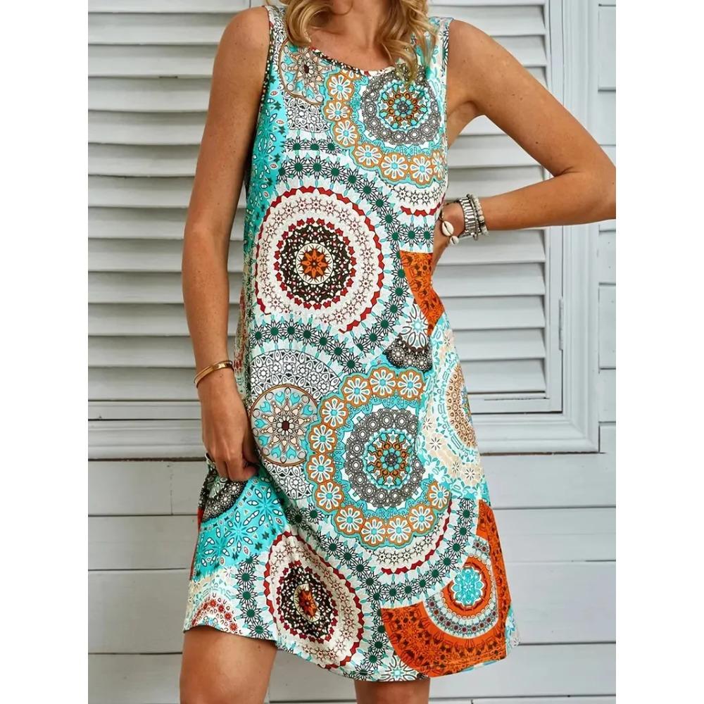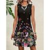Летнее Простое Цветное Платье-Жилет Без Рукавов с Цветочным Принтом Стиль Летнего Отдыха Повседневное Удобное Мягкое Дышащее Свободное Женское Мини-Платье