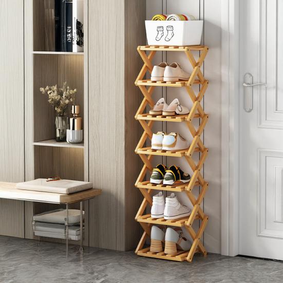 Многоуровневая складная бамбуковая полка для обуви без сборки, узкая, экономичная, для прихожей, кладовки, общежития
