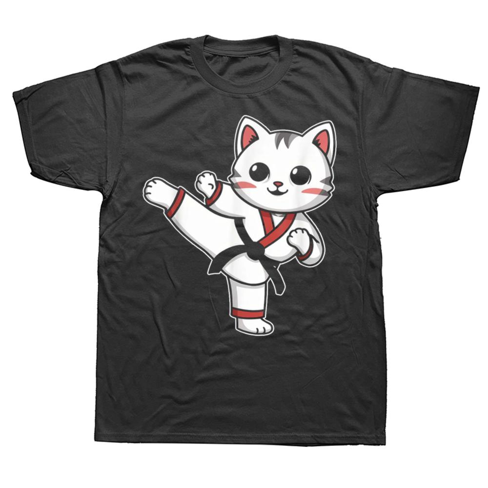Карате Тхэквондо Забавный Кот Джиу-джитсу Корейские Боевые Искусства Кик-файтинг Футболка Оверсайз С Принтом Повседневная Футболка Повседневная С Коротким Рукавом