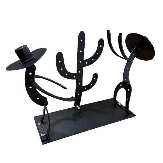 Wine Bottle Holder Cowboy Cactus Silhouette Rustic Southwestern Metal Wine Rack Tabletop Stable Storage Organizer Dining Room Western Decor