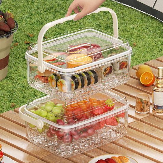 Практичная герметичная крышка для сохранения свежести: Благодаря герметичной крышке этот сервировочный поднос предотвращает проливание и сохраняет свежесть продуктов во время транспортировки и употребления.. Герметичное закрытие сохраняет вкус и влагу, гарантируя, что ваши блюда останутся аппетитными, будь то немедленная подача или временное хранение.