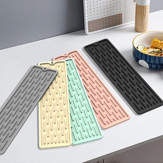 Многофункциональное использование и стильная интеграция: Помимо защиты вашей столешницы, этот коврик также служит небольшой подставкой для хранения мыла для рук, бутылок с моющим средством или зубных щеток.. Его элегантный дизайн безупречно вписывается в современный кухонный интерьер, улучшая как организацию, так и эстетику.