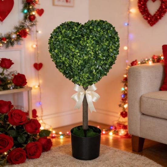 1/2Pcs Artificial Heart Topiary Tree Love Heart Topiary Stake with Rainbow Bow Indoor Outdoor Garden Porch Faux Shrubs Plants Decoration