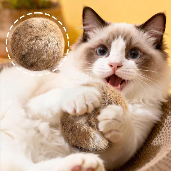 Пушистый Шарик Кошачья Игрушка Мягкий Пушистый Шарик из Кроличьего Меха Моющийся Веселый Мячик для Кошек Стимулирует Охотничий Инстинкт Игрушка-Пиналка для Домашних Кошек Тренировка