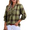 Женская рубашка изготовлена из высококачественного полиэстера, обеспечивающего воздухопроницаемость и мягкое, приятное к коже ощущение для комфорта в течение всего дня.. Стильный V-образный вырез и классический клетчатый узор сочетают в себе непринужденный шарм и легкую элегантность..