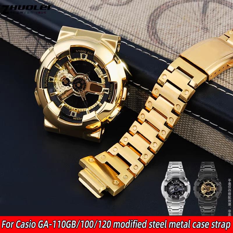 Модифицированный золотой корпус, безель, металлический ремешок для часов, набор для Casio G-SHOCK Black Samurai GA-110GB GA100 GA120, ремешок для часов из нержавеющей стали — купить товар онлайн с бесплатной доставкой по всему миру!