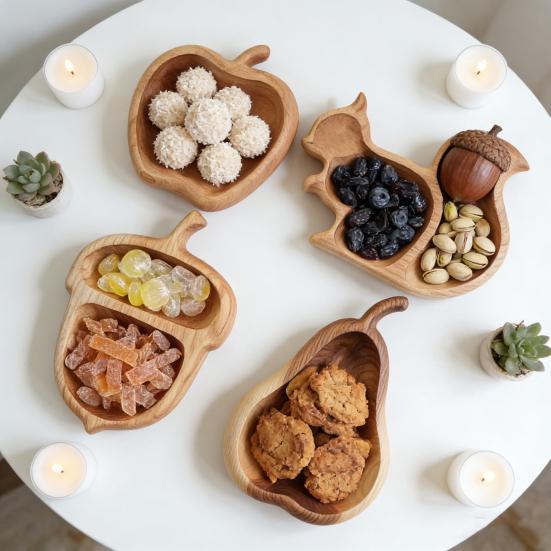 Многоцелевое использование: Идеально подходит для подачи небольших закусок, таких как сухофрукты, орехи или сыр, эта деревянная тарелка также служит креативным органайзером для детских игрушек или принадлежностей для творчества. Его прочная конструкция обеспечивает долговечность использования как на кухне, так и в игровой комнате.