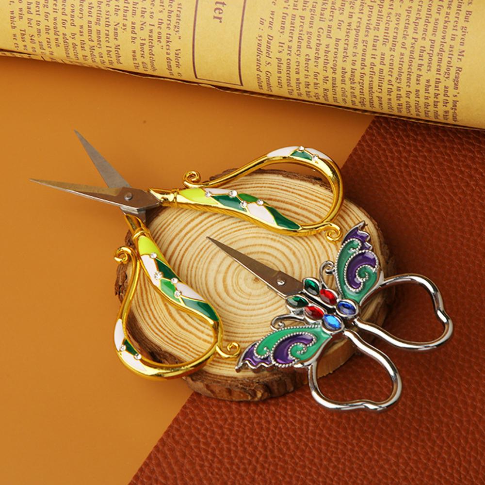 1pc Tailor Scissors Stainless Steel Fabric Cutter Enamel Trace Gold Silver Butterfly Courtly Luxury Old European Sewing Supply