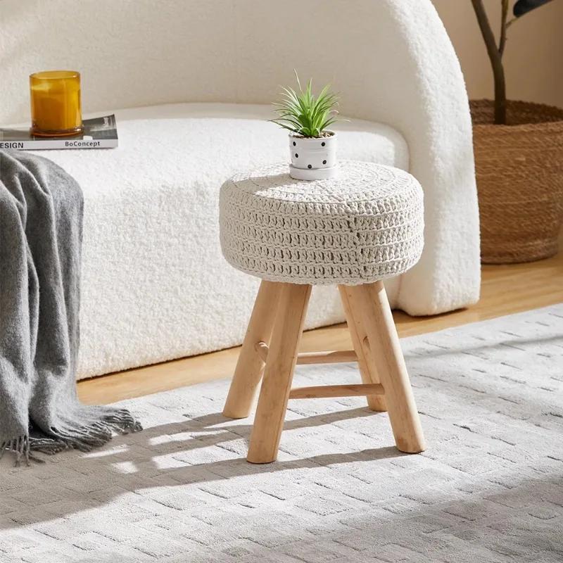 Solid Wood Nordic Makeup Stool Vintage Dressing Stool Woven Fringe Round Seat Upholstered Stool for Guesthouses — купить товар онлайн с бесплатной доставкой по всему миру!
