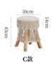 Solid Wood Nordic Makeup Stool Vintage Dressing Stool Woven Fringe Round Seat Upholstered Stool for Guesthouses