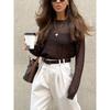 Прозрачный винтажный топ с длинным рукавом, свободные пуловеры, базовая сексуальная футболка для женщин, летний вязаный свитер, женская футболка оверсайз