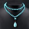 JMXD-Богемное бирюзовое ожерелье модный ретро этнический стиль ручной работы узелками кулон в виде капли длинное ожерелье