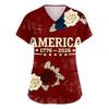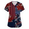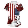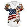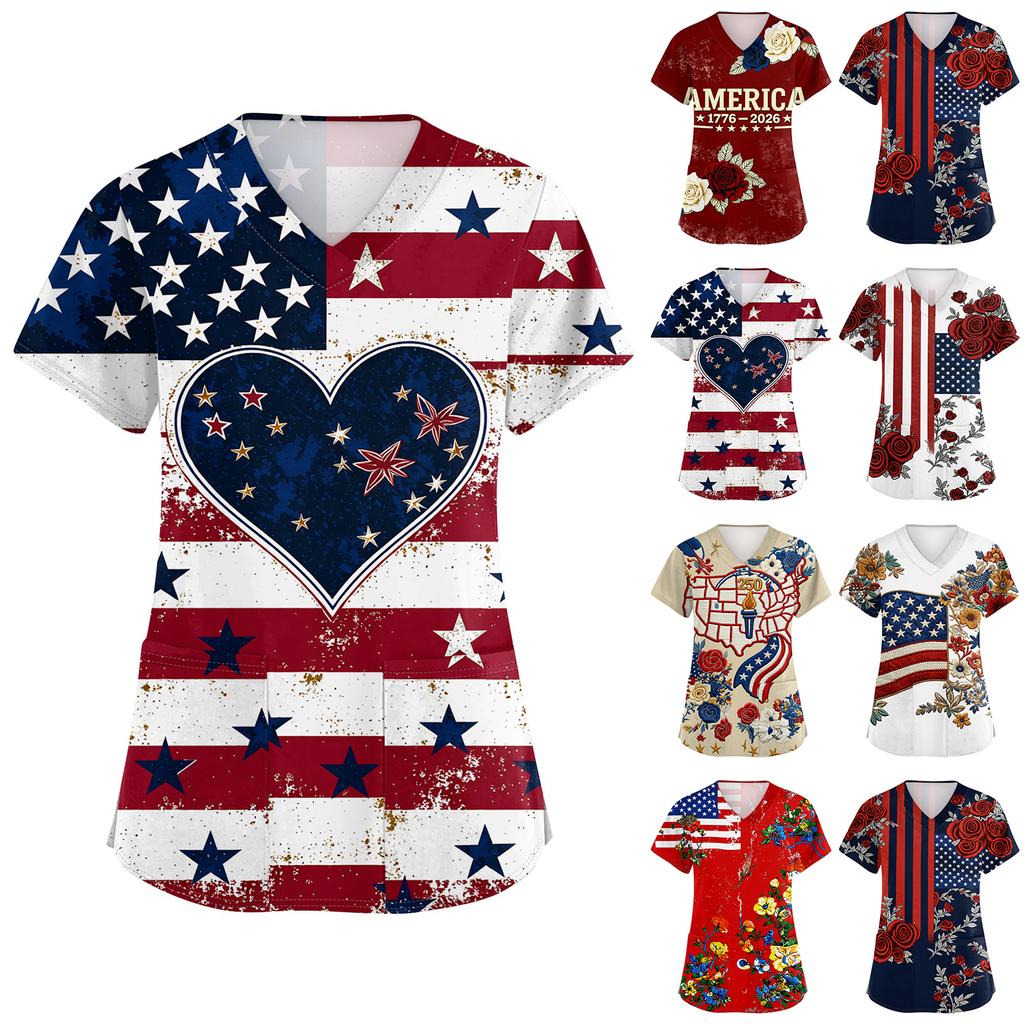 Женский топ с коротким рукавом, принтом ко Дню независимости, V-образным вырезом, карманом, рабочая одежда