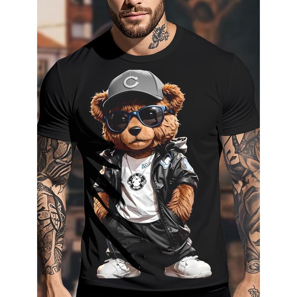 Европейские размеры Мужская забавная футболка с принтом - Крутой плюшевый мишка в модных очках Уличный стиль - Мягкая дышащая полиэстеровая футболка для вечеринок — купить товар онлайн с бесплатной доставкой по всему миру!