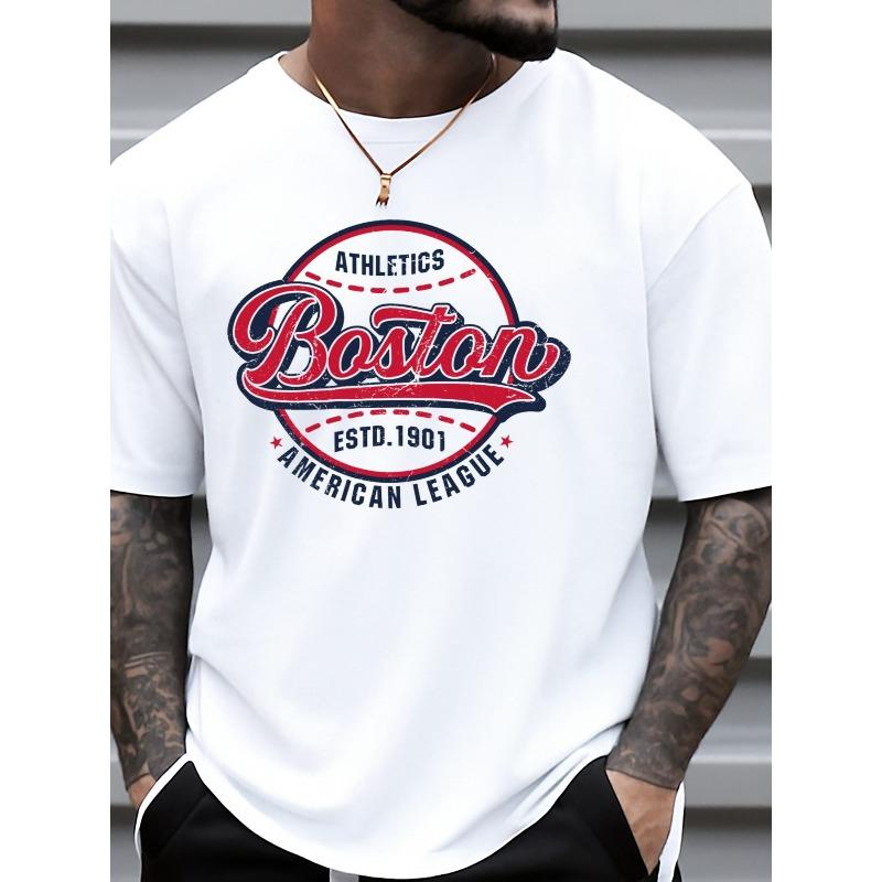 Европейские размеры Мужская футболка Boston Athletics Винтажный принт - Белая Ретро Спортивная футболка, Повседневная одежда - Можно стирать в машине l — купить товар онлайн с бесплатной доставкой по всему миру!