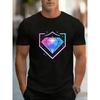 Европейские размеры Модный неоновый градиентный значок-щит с бриллиантами и принтом со звездным декором | Простая и модная мужская футболка с круглым вырезом