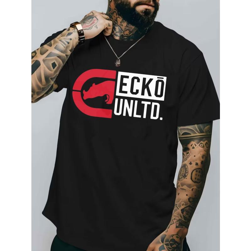 Европейские размеры Мужская новая футболка с логотипом Красного Геккона, Черный фон с Белым Текстом Жирными Буквами и Модными Элементами Дизайна