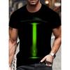 Европейские размеры Мужская черная футболка с принтом - летающая тарелка и инопланетный космический корабль неоново-зеленого цвета - С круглым вырезом, короткий рукав, Машинная стирка