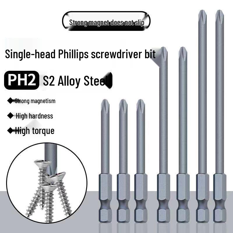 Strong Magnetic Phillips S2 Single Head Hex Shank Screwdriver Bit for Hand Drill - Super Hard, Small Head.