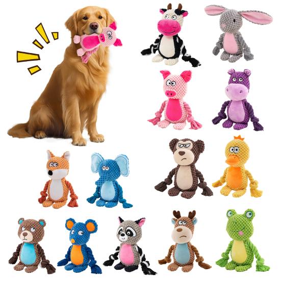 Конструкция из премиальных материалов: Изготовленная из ультрамягкого плюша в сочетании с ножками из натуральной хлопковой веревки, эта игрушка для домашних животных предлагает нежную, но прочную текстуру, безопасную для пасти вашей собаки.. Хлопковые волокна обеспечивают устойчивость к укусам, сохраняя при этом приятную на ощупь текстуру, что гарантирует долговечность и комфорт во время игры.