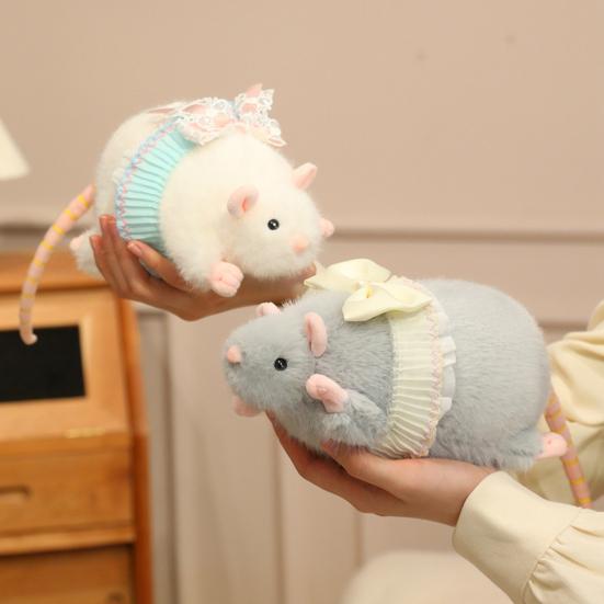 Эта очаровательная мягкая мышка идеально подходит по размеру, чтобы поместиться на ладони, что позволяет ее удобно держать, играть с ней или использовать в качестве очаровательного украшения для рабочего стола.. Изготовленный с изысканными деталями, такими как розовые подушечки лап, полосатый длинный хвост и нежная кружевная юбка с бантами, он прекрасно передает милоту настоящей мыши..