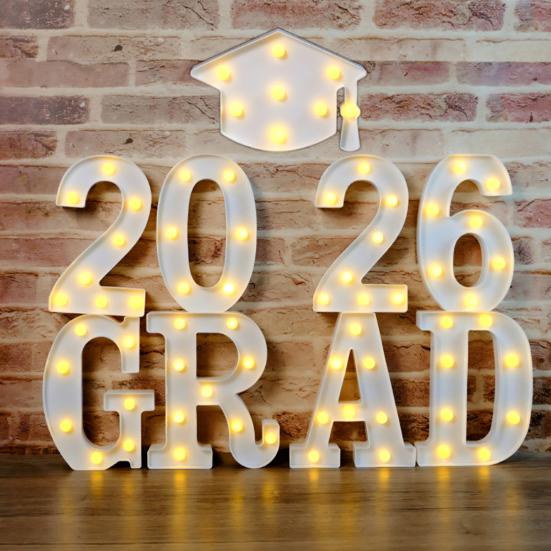 8/9Pcs 2026 Grad Light-up Letter Sign LED Marquee Letter Light Battery Powered Kindergarten High School College Graduation Party Decor — купить товар онлайн с бесплатной доставкой по всему миру!