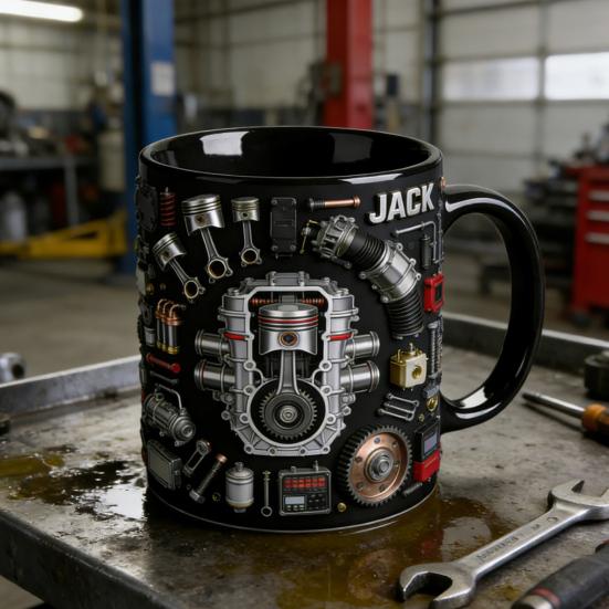Функциональное искусство для энтузиастов: Помимо своей практичности как чашки для кофе или чая, эта кружка также служит декоративным элементом, богатым технологическим стилем.. Это отличный подарок или личный предмет для автолюбителей, инженеров или поклонников промышленного дизайна, которые ценят сочетание практичности с художественным выражением в своей повседневной жизни.