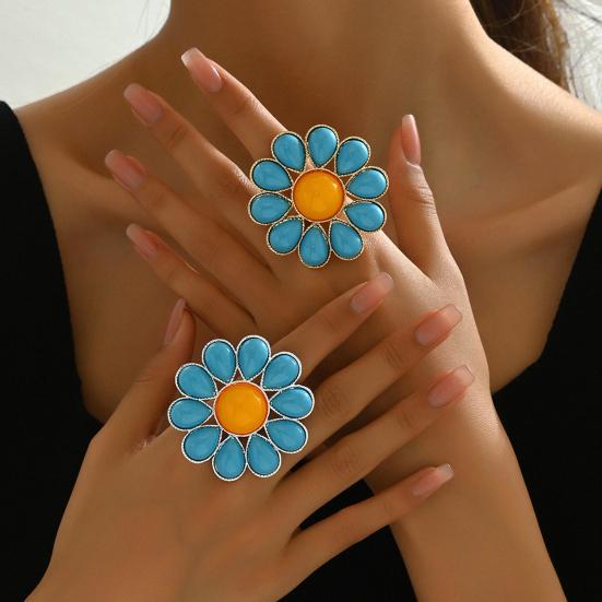 Кольцо с цветком для женщин Синие лепестки Большое Богемное цветочное кольцо Большой цветущий цветок Кольцо из цинкового сплава для свадьбы Праздничные ювелирные подарки