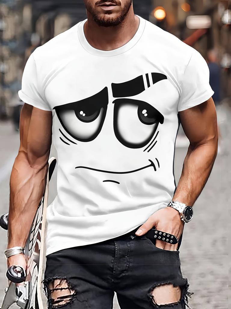 Mens big eyed expression printed round neck Tshirt casual street style short sleeved top ideal choice for summer vacation — купить товар онлайн с бесплатной доставкой по всему миру!