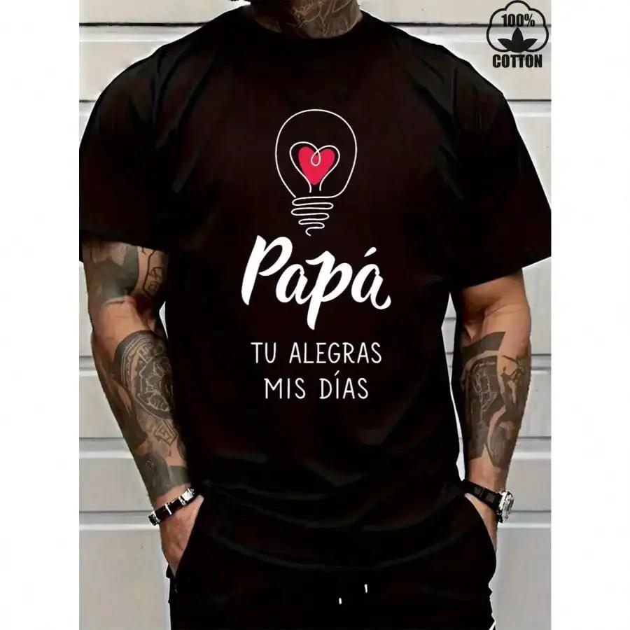 Mens Casual Short Sleeve TShirt 100 Cotton Spanish Papa Graphic Print with Heart Light Bulb Design Fathers Day Gift — купить товар онлайн с бесплатной доставкой по всему миру!
